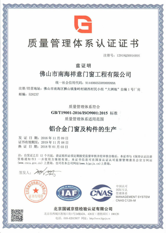 廣東祥意門窗工程有限公司是一家專注鋁合金門窗工程及門窗加工、制作的優(yōu)質企業(yè)。公司憑著精湛的技術服務和優(yōu)良的售后服務,已成功完成多個優(yōu)質項目。